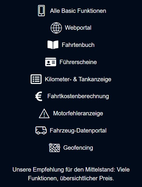 | GPS-Stecker Variante: | Akku Variante TAT140 - für Anhänger/Container, Batterie Variante FMC880 - für Motorrad/Quads/Maschinen/Boote, OBDII Stecker FMC003 - für KFZ/LKW |